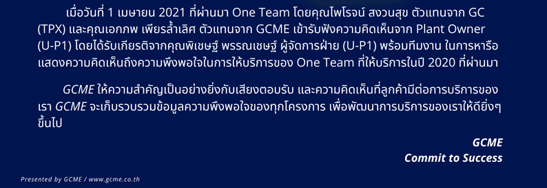 ข่าวประชาสัมพันธ์ : ONE Team Receiving Plant Feedback Activity from U-P1